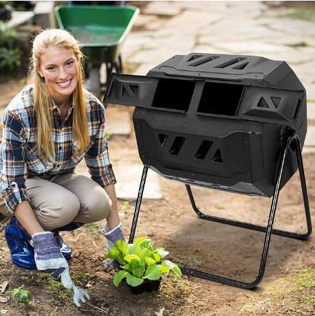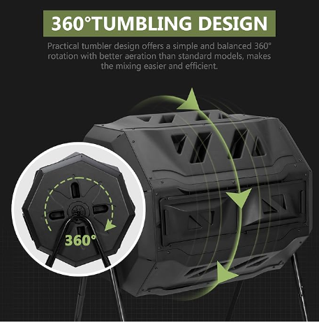 Outdoor Compost Tumbler 43 Gallon Dual Chamber Large Compost Bin 360° Rotating Tumbling Composter BPA Free for Garden Yard, Black